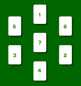 上から7枚目を1の場所に置きます。 すべてカードの絵が見えるように置きます。